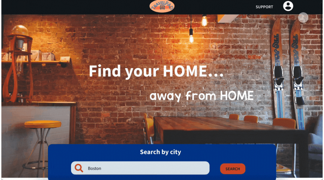 COLOR: Three neutrals were used as the primary colors: white, black, and light blue. Secondary colors included two darker blues, while two oranges were used as accent colors. Using white, black, and light blue gave the overall website a polished look while sticking with the blue theme. Blue was chosen because of its association with healthcare (users are RNs) and relaxation (what users hope to find in housing). Orange was used because of its connection to warmth and positivity, which is what users will experience when finding and staying at a Travelpad home.