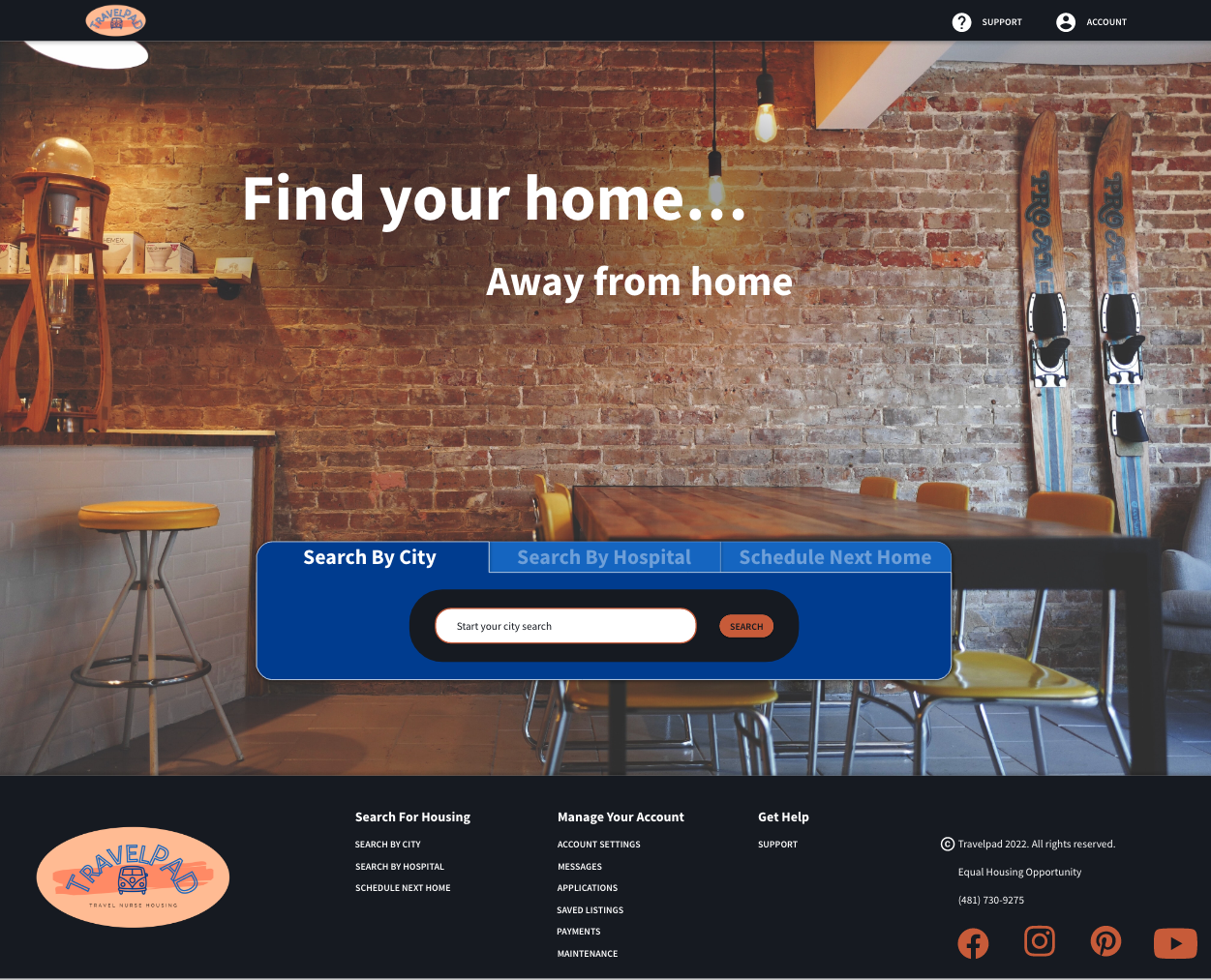 The Travelpad desktop and mobile websites seek to simplify the process of finding furnished, short term rentals for travel nurses. By providing tailored search options and filters such as search by hospital, Travelpad caters to the need of nurses traveling to new contracts all around the country every 4-13 weeks.