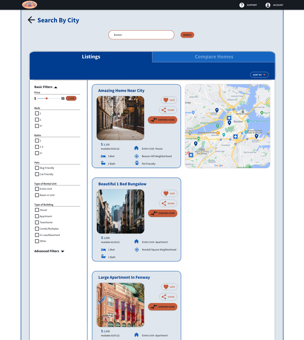 Insight #2: Users want the “compare homes” feature incorporated into the page with all the city/ hospital listings instead of the top navigation and homepage.